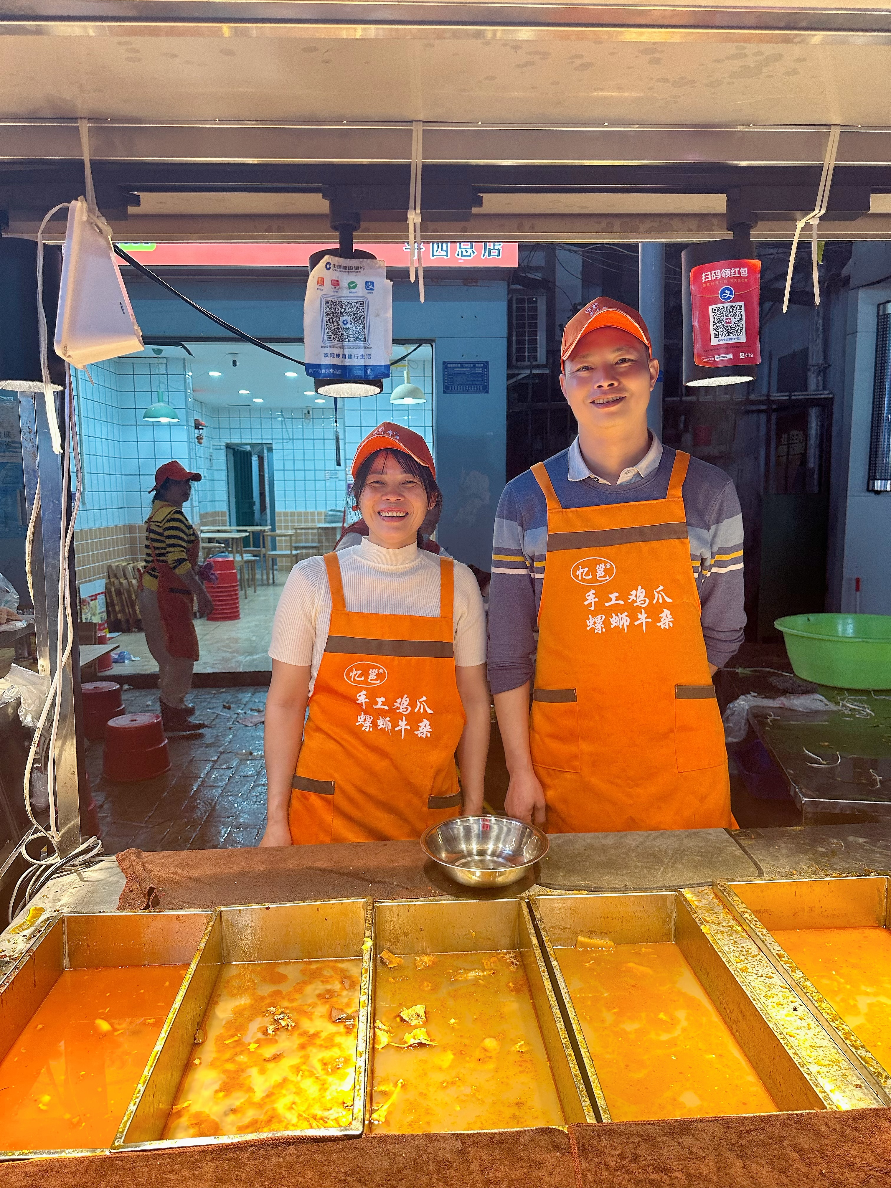 夫妻創(chuàng)業(yè),在夜市街經(jīng)營(yíng)小餐飲,創(chuàng)立了“憶邕”螺螄牛雜。